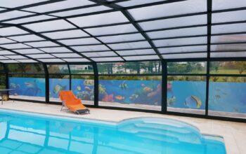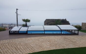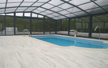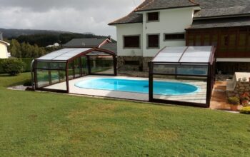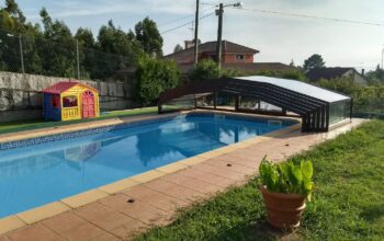 ;Cubierta de piscina con elementos decorativos en Vivienda en Muros