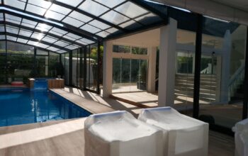 ;Instalación de cubierta alta para piscina adosada en Guadalajara