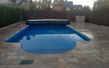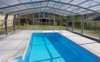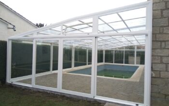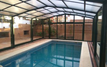 ;Instalación de cubierta alta para piscina adosada en Madrid
